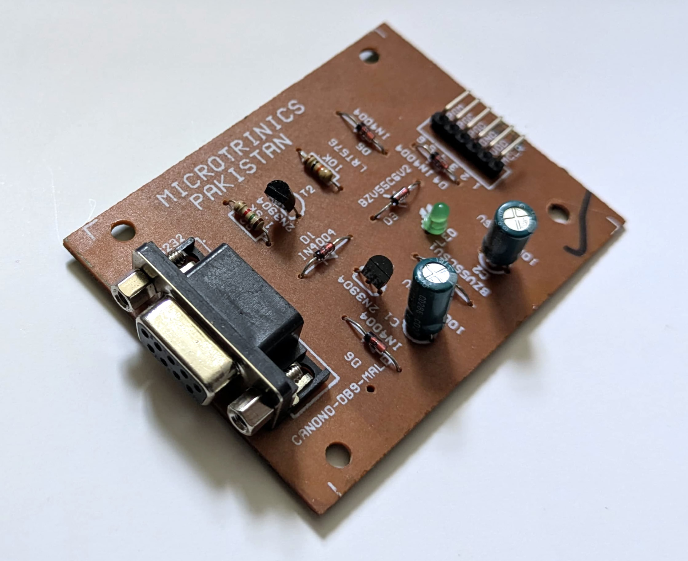 JDM PIC programmer Pakistan, PIC programmer RS232 serial port, PIC16F programmer desktop, PIC ICSP JDM programmer, JDM programmer 12F 16F 18F, serial port PIC microcontroller programmer, RS232 PIC programming tool.